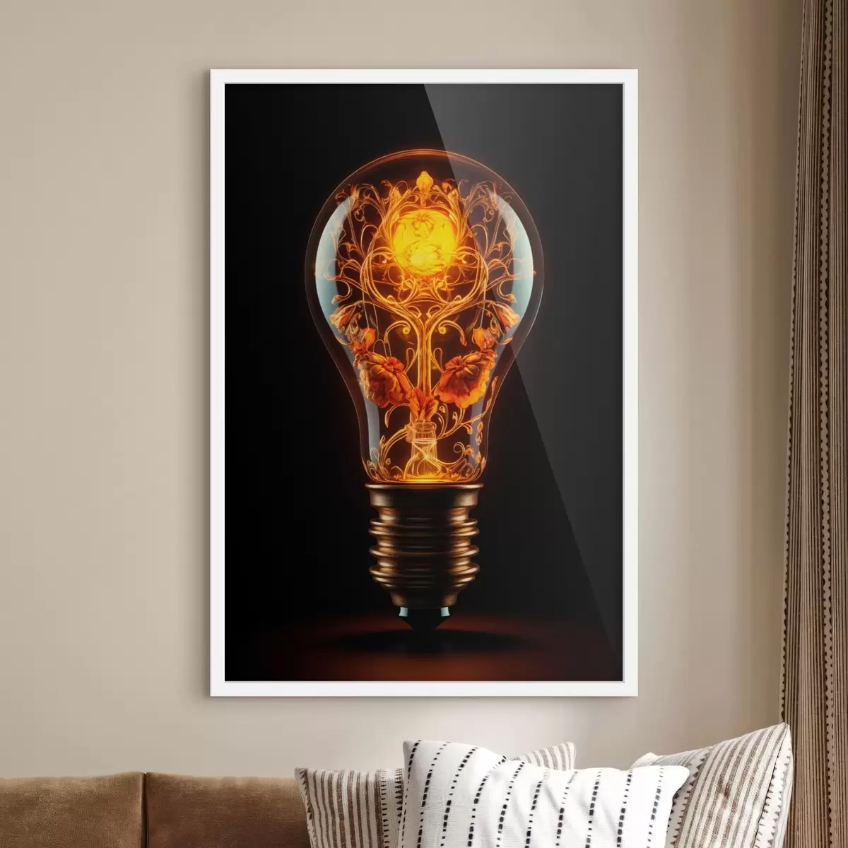 Plakatas Šviečianti lemputė su dekoratyviniais raštais viduje f48620