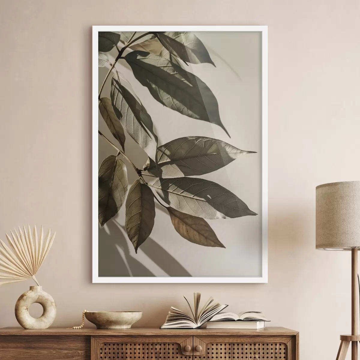 Plakatas Alyvmedžių šakos, smėlio spalvos ir žalios augalinės detalės f48627