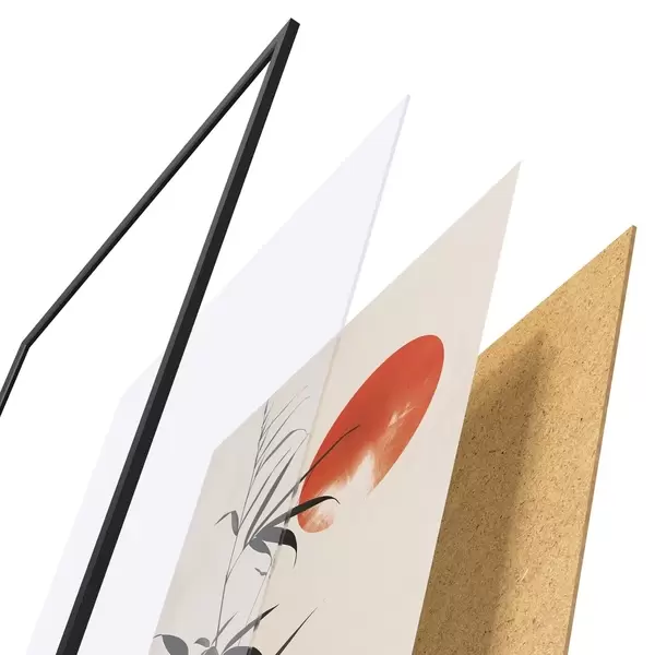 Plakatą sudaro rėmas, pleksiklas, atspausdintas vaizdas ir medžio drožlių plokštės pagrindas. Plakatą galima iš karto pakabinti ant sienos dėl kitoje pusėje esančių laikiklių.