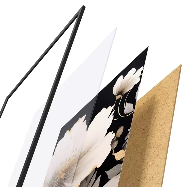 Plakatą sudaro rėmas, pleksiklas, atspausdintas vaizdas ir medžio drožlių plokštės pagrindas. Plakatą galima iš karto pakabinti ant sienos dėl kitoje pusėje esančių laikiklių.