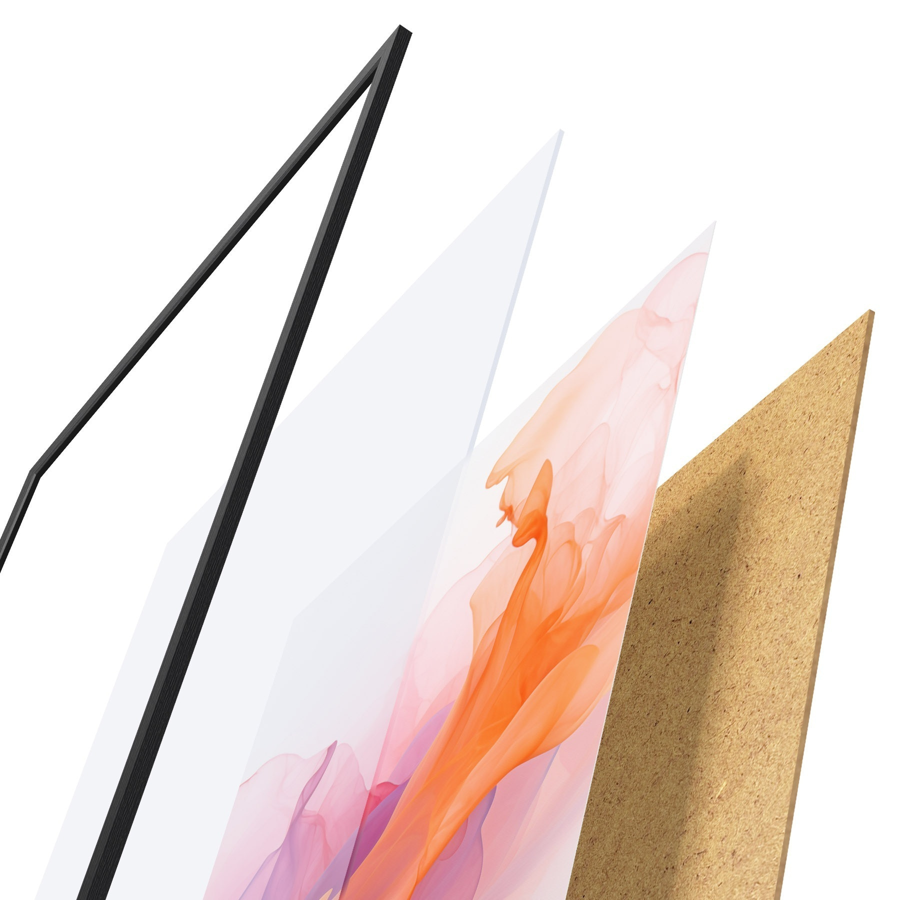 Plakatą sudaro rėmas, pleksiklas, atspausdintas vaizdas ir medžio drožlių plokštės pagrindas. Plakatą galima iš karto pakabinti ant sienos dėl kitoje pusėje esančių laikiklių.
