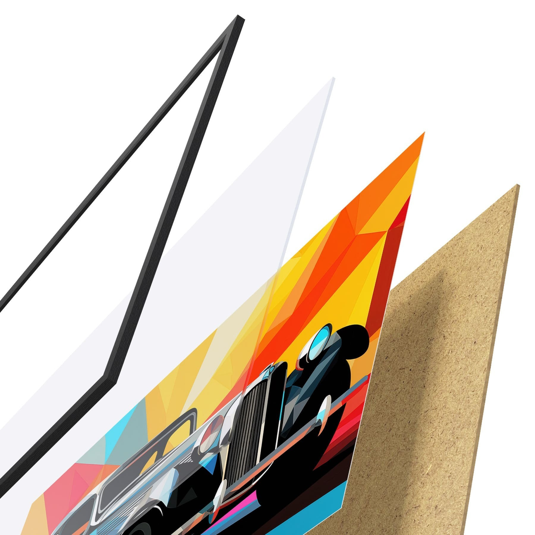 Plakatą sudaro rėmas, pleksiklas, atspausdintas vaizdas ir medžio drožlių plokštės pagrindas. Plakatą galima iš karto pakabinti ant sienos dėl kitoje pusėje esančių laikiklių.