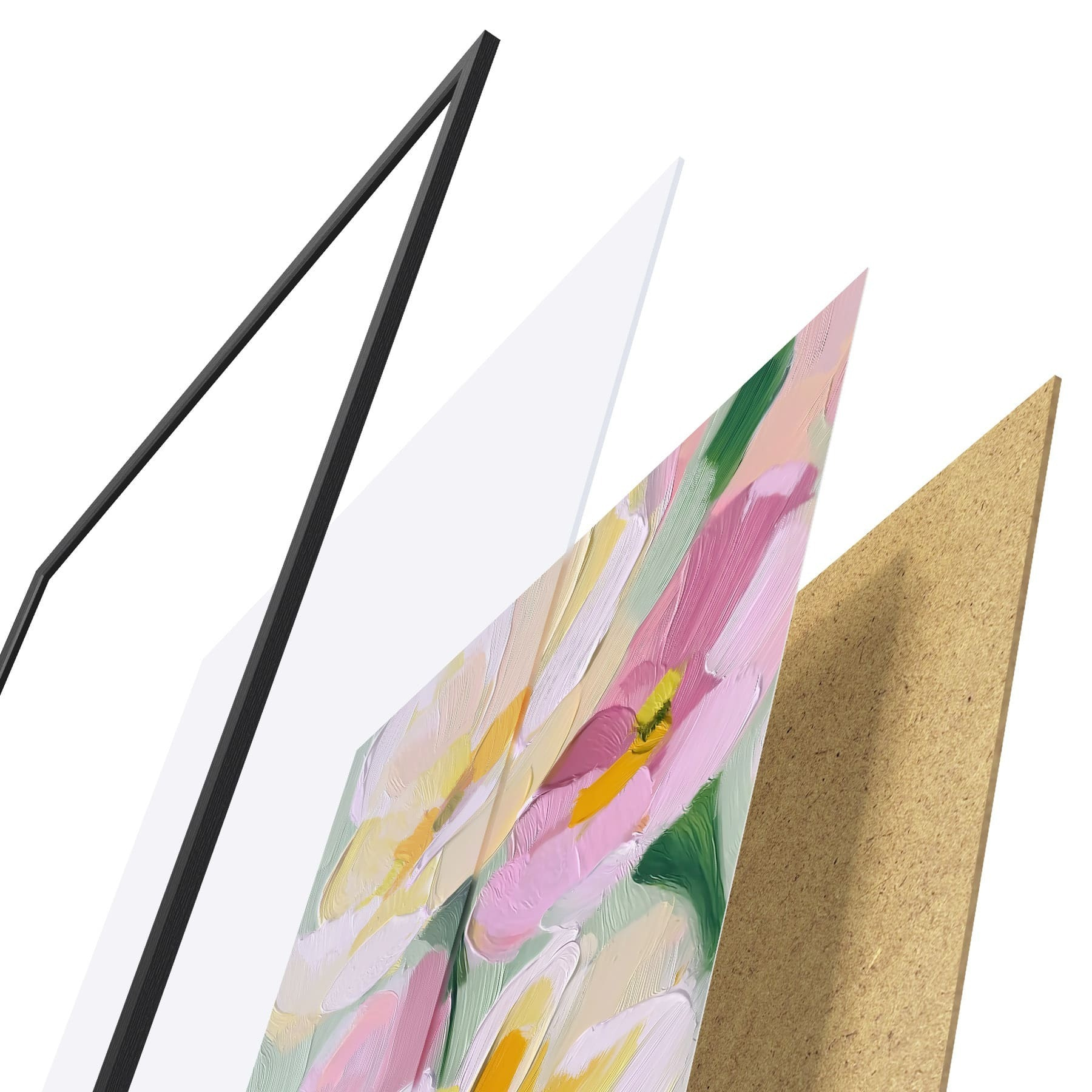Plakatą sudaro rėmas, pleksiklas, atspausdintas vaizdas ir medžio drožlių plokštės pagrindas. Plakatą galima iš karto pakabinti ant sienos dėl kitoje pusėje esančių laikiklių.