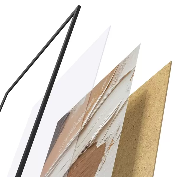 Plakatą sudaro rėmas, pleksiklas, atspausdintas vaizdas ir medžio drožlių plokštės pagrindas. Plakatą galima iš karto pakabinti ant sienos dėl kitoje pusėje esančių laikiklių.
