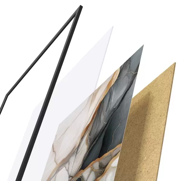 Plakatą sudaro rėmas, pleksiklas, atspausdintas vaizdas ir medžio drožlių plokštės pagrindas. Plakatą galima iš karto pakabinti ant sienos dėl kitoje pusėje esančių laikiklių.