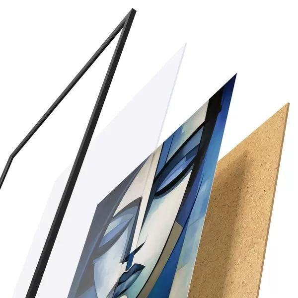 Plakatą sudaro rėmas, pleksiklas, atspausdintas vaizdas ir medžio drožlių plokštės pagrindas. Plakatą galima iš karto pakabinti ant sienos dėl kitoje pusėje esančių laikiklių.