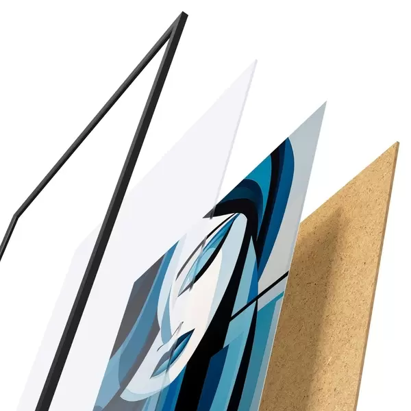 Plakatą sudaro rėmas, pleksiklas, atspausdintas vaizdas ir medžio drožlių plokštės pagrindas. Plakatą galima iš karto pakabinti ant sienos dėl kitoje pusėje esančių laikiklių.