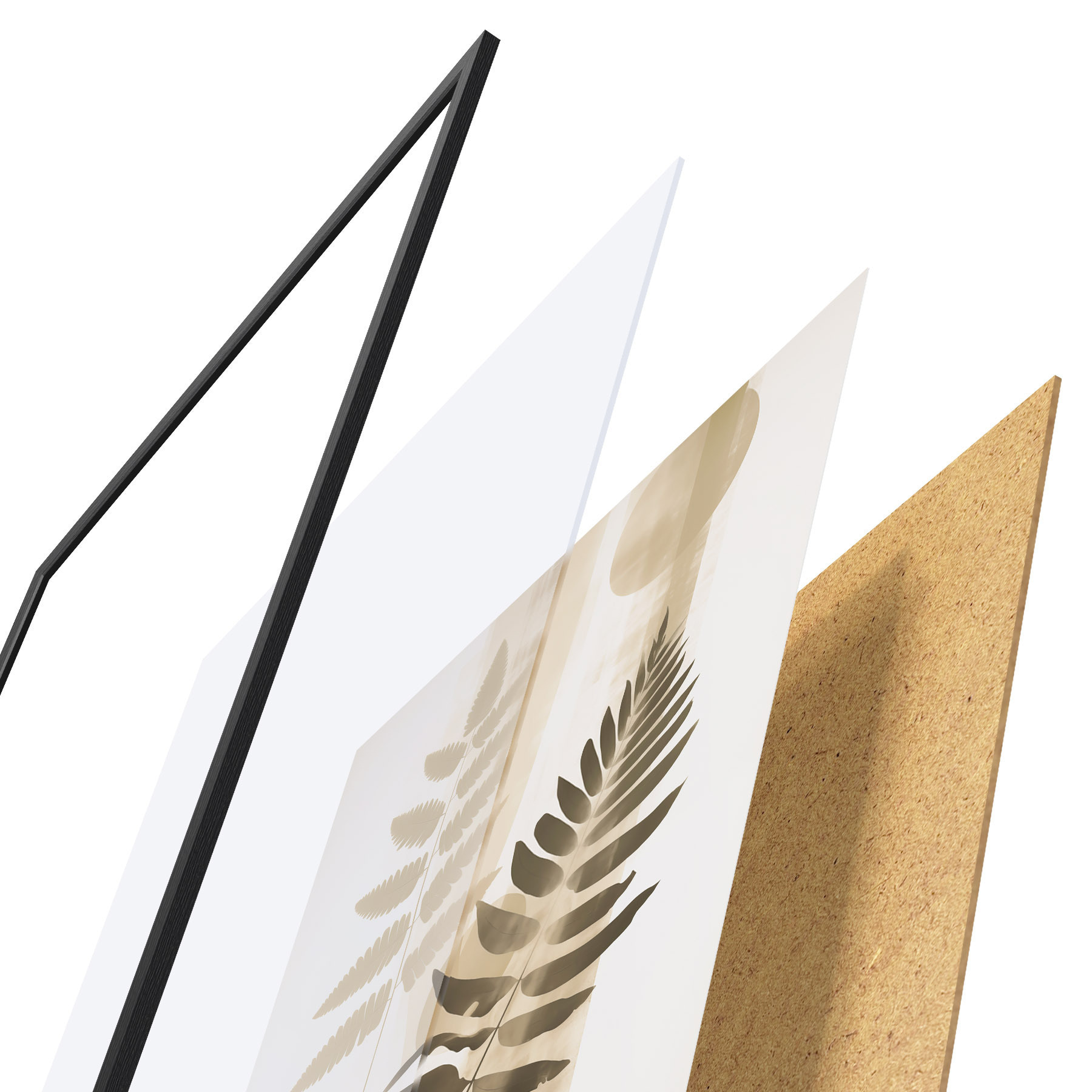 Plakatą sudaro rėmas, pleksiklas, atspausdintas vaizdas ir medžio drožlių plokštės pagrindas. Plakatą galima iš karto pakabinti ant sienos dėl kitoje pusėje esančių laikiklių.