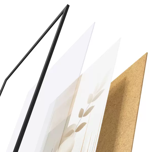 Plakatą sudaro rėmas, pleksiklas, atspausdintas vaizdas ir medžio drožlių plokštės pagrindas. Plakatą galima iš karto pakabinti ant sienos dėl kitoje pusėje esančių laikiklių.