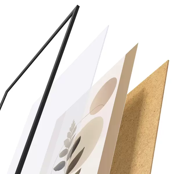 Plakatą sudaro rėmas, pleksiklas, atspausdintas vaizdas ir medžio drožlių plokštės pagrindas. Plakatą galima iš karto pakabinti ant sienos dėl kitoje pusėje esančių laikiklių.