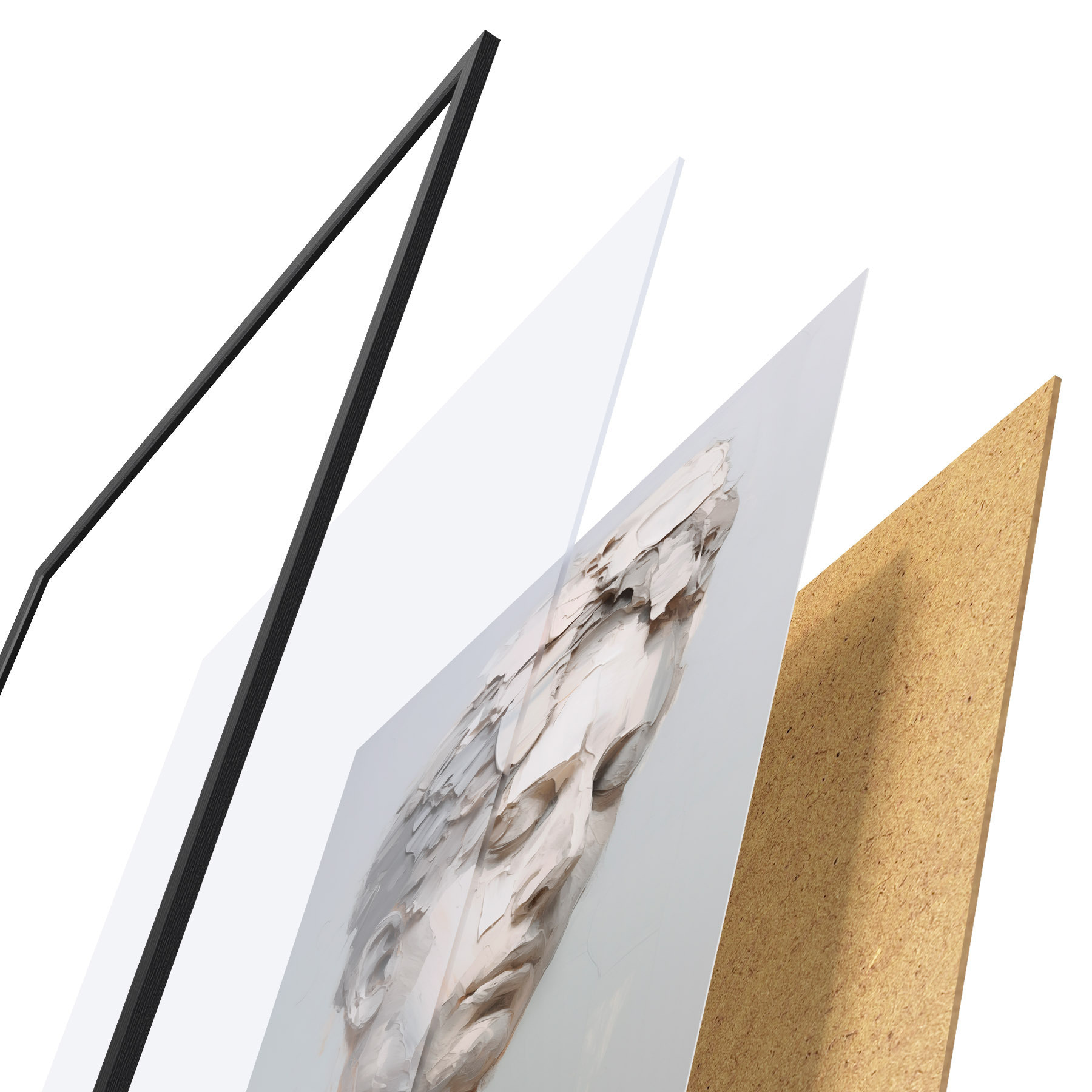 Plakatą sudaro rėmas, pleksiklas, atspausdintas vaizdas ir medžio drožlių plokštės pagrindas. Plakatą galima iš karto pakabinti ant sienos dėl kitoje pusėje esančių laikiklių.