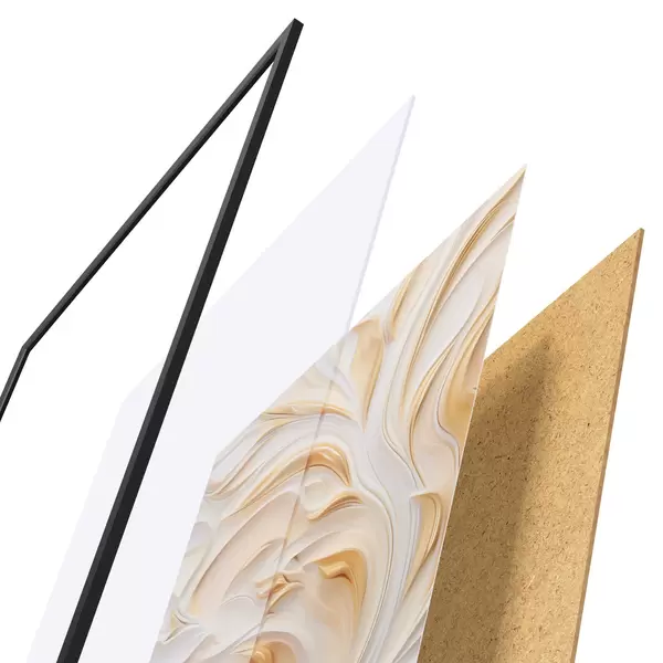 Plakatą sudaro rėmas, pleksiklas, atspausdintas vaizdas ir medžio drožlių plokštės pagrindas. Plakatą galima iš karto pakabinti ant sienos dėl kitoje pusėje esančių laikiklių.