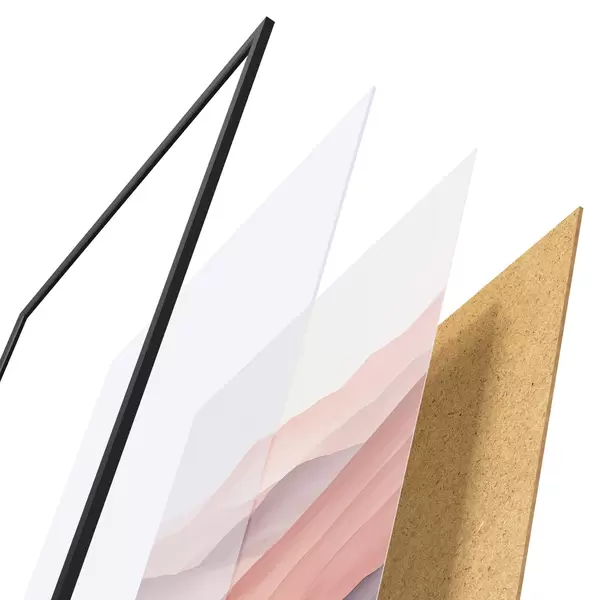 Plakatą sudaro rėmas, pleksiklas, atspausdintas vaizdas ir medžio drožlių plokštės pagrindas. Plakatą galima iš karto pakabinti ant sienos dėl kitoje pusėje esančių laikiklių.