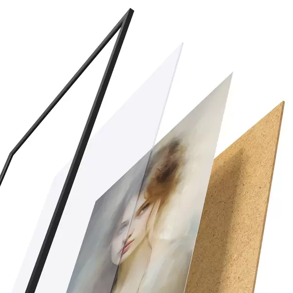 Plakatą sudaro rėmas, pleksiklas, atspausdintas vaizdas ir medžio drožlių plokštės pagrindas. Plakatą galima iš karto pakabinti ant sienos dėl kitoje pusėje esančių laikiklių.