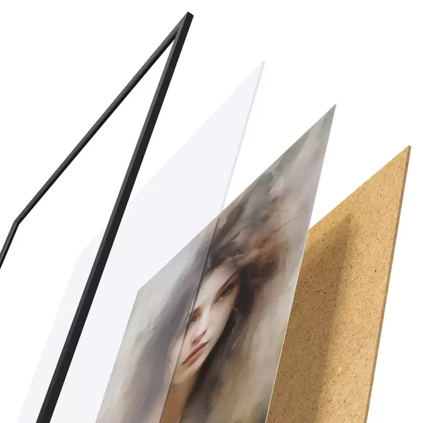 Plakatą sudaro rėmas, pleksiklas, atspausdintas vaizdas ir medžio drožlių plokštės pagrindas. Plakatą galima iš karto pakabinti ant sienos dėl kitoje pusėje esančių laikiklių.