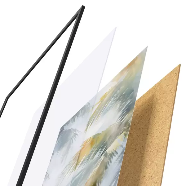 Plakatą sudaro rėmas, pleksiklas, atspausdintas vaizdas ir medžio drožlių plokštės pagrindas. Plakatą galima iš karto pakabinti ant sienos dėl kitoje pusėje esančių laikiklių.