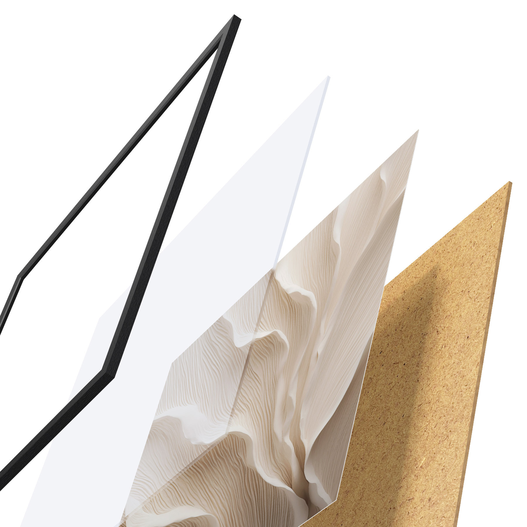 Plakatą sudaro rėmas, pleksiklas, atspausdintas vaizdas ir medžio drožlių plokštės pagrindas. Plakatą galima iš karto pakabinti ant sienos dėl kitoje pusėje esančių laikiklių.