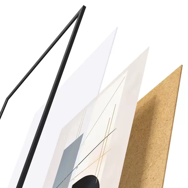 Plakatą sudaro rėmas, pleksiklas, atspausdintas vaizdas ir medžio drožlių plokštės pagrindas. Plakatą galima iš karto pakabinti ant sienos dėl kitoje pusėje esančių laikiklių.