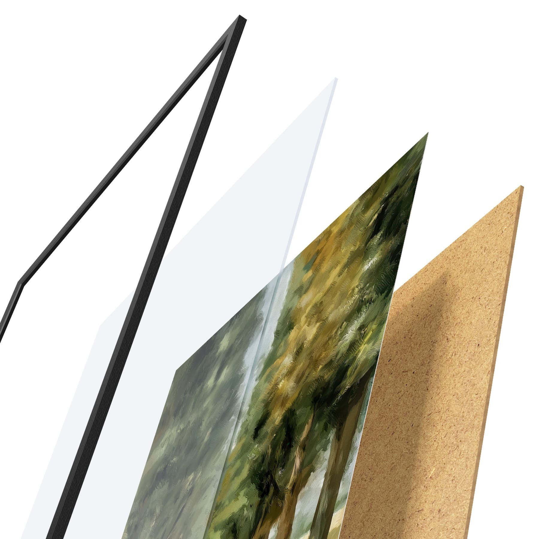 Plakatą sudaro rėmas, pleksiklas, atspausdintas vaizdas ir medžio drožlių plokštės pagrindas. Plakatą galima iš karto pakabinti ant sienos dėl kitoje pusėje esančių laikiklių.