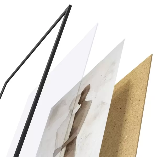 Plakatą sudaro rėmas, pleksiklas, atspausdintas vaizdas ir medžio drožlių plokštės pagrindas. Plakatą galima iš karto pakabinti ant sienos dėl kitoje pusėje esančių laikiklių.