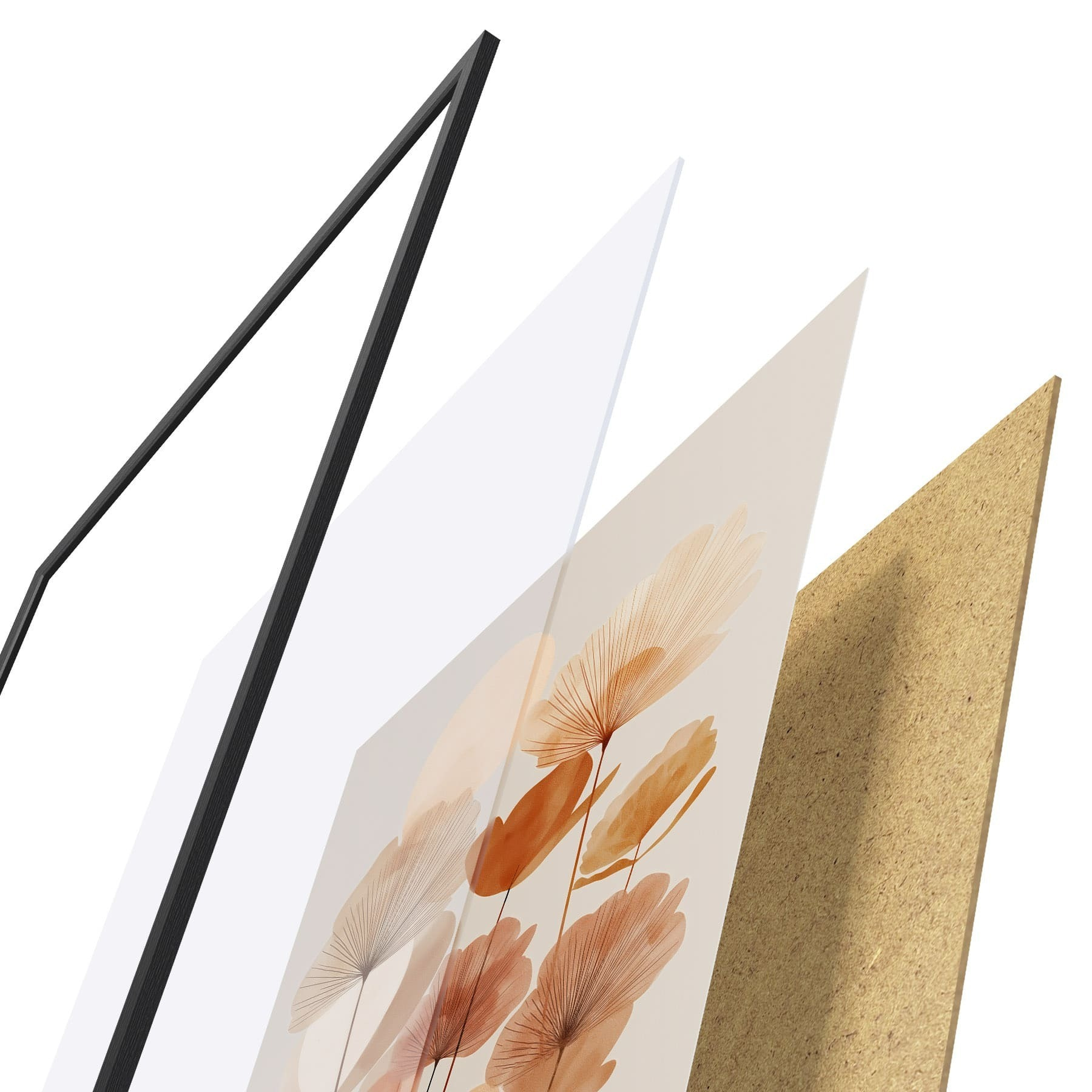 Plakatą sudaro rėmas, pleksiklas, atspausdintas vaizdas ir medžio drožlių plokštės pagrindas. Plakatą galima iš karto pakabinti ant sienos dėl kitoje pusėje esančių laikiklių.