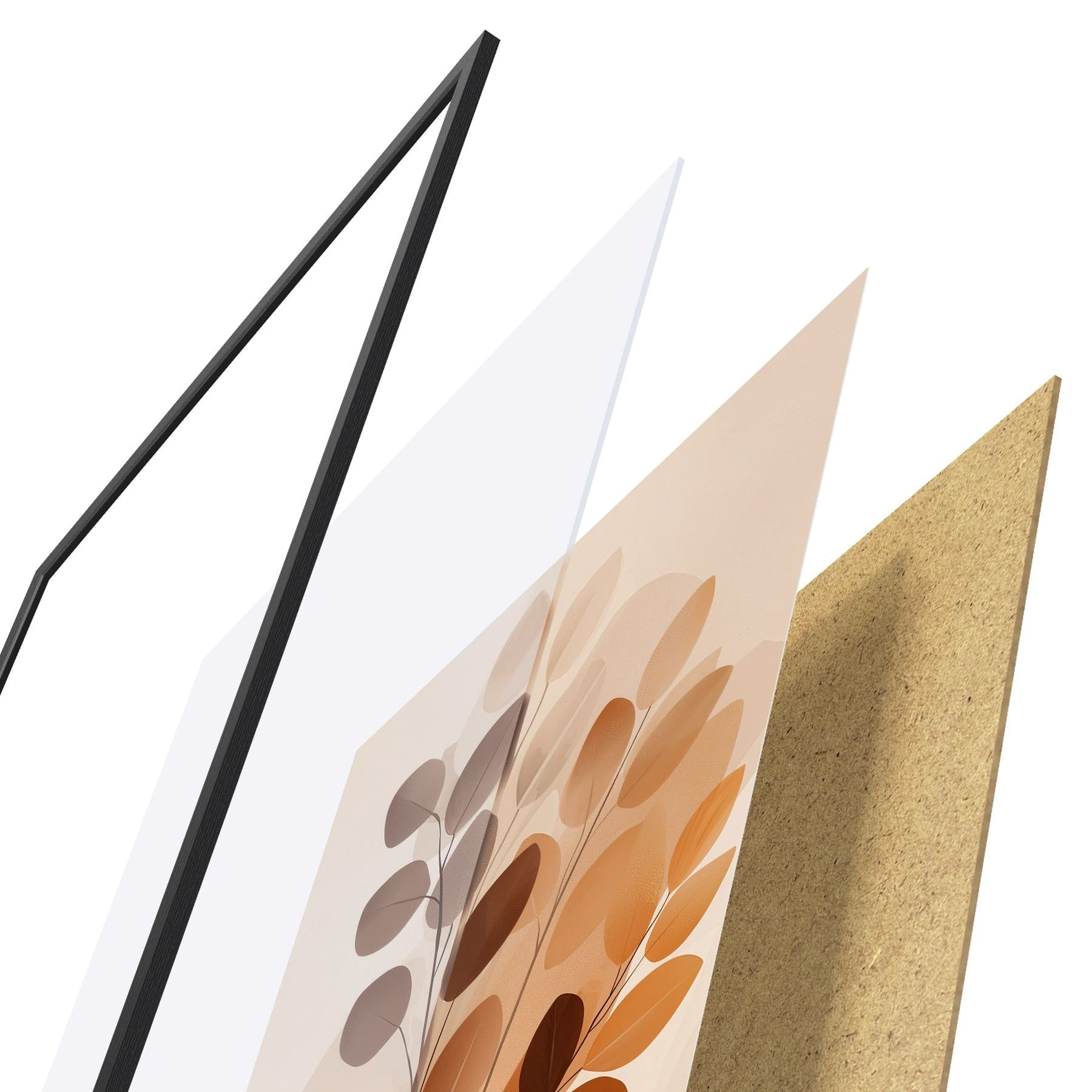 Plakatą sudaro rėmas, pleksiklas, atspausdintas vaizdas ir medžio drožlių plokštės pagrindas. Plakatą galima iš karto pakabinti ant sienos dėl kitoje pusėje esančių laikiklių.