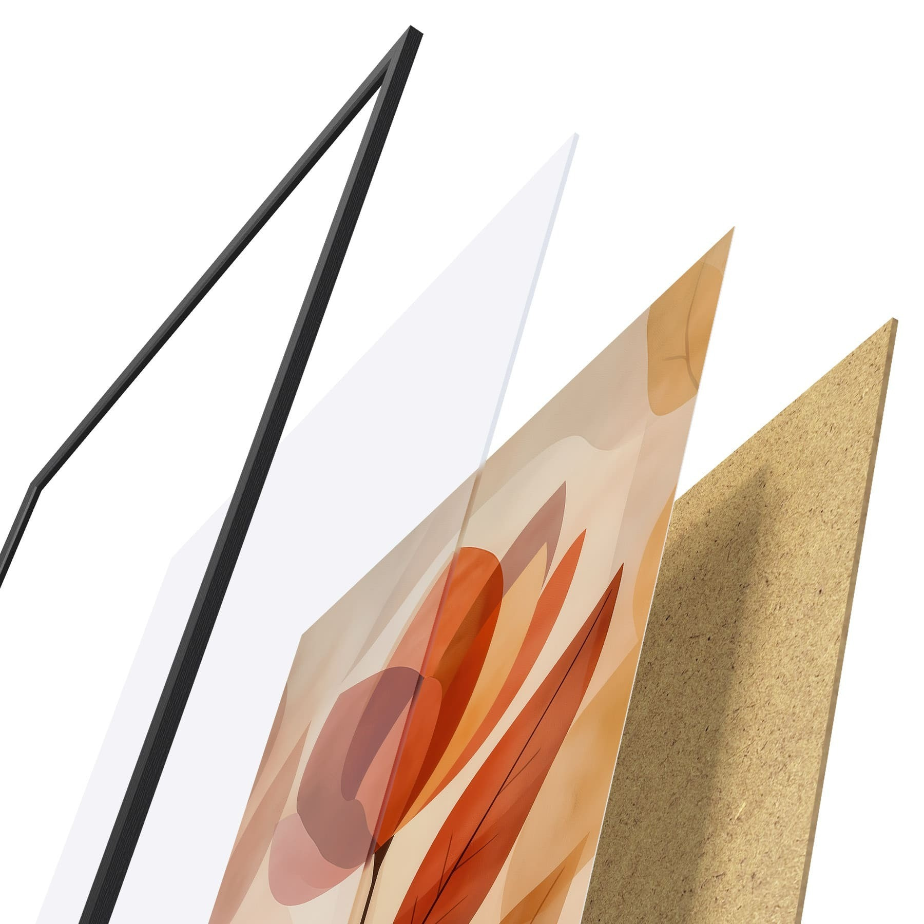 Plakatą sudaro rėmas, pleksiklas, atspausdintas vaizdas ir medžio drožlių plokštės pagrindas. Plakatą galima iš karto pakabinti ant sienos dėl kitoje pusėje esančių laikiklių.