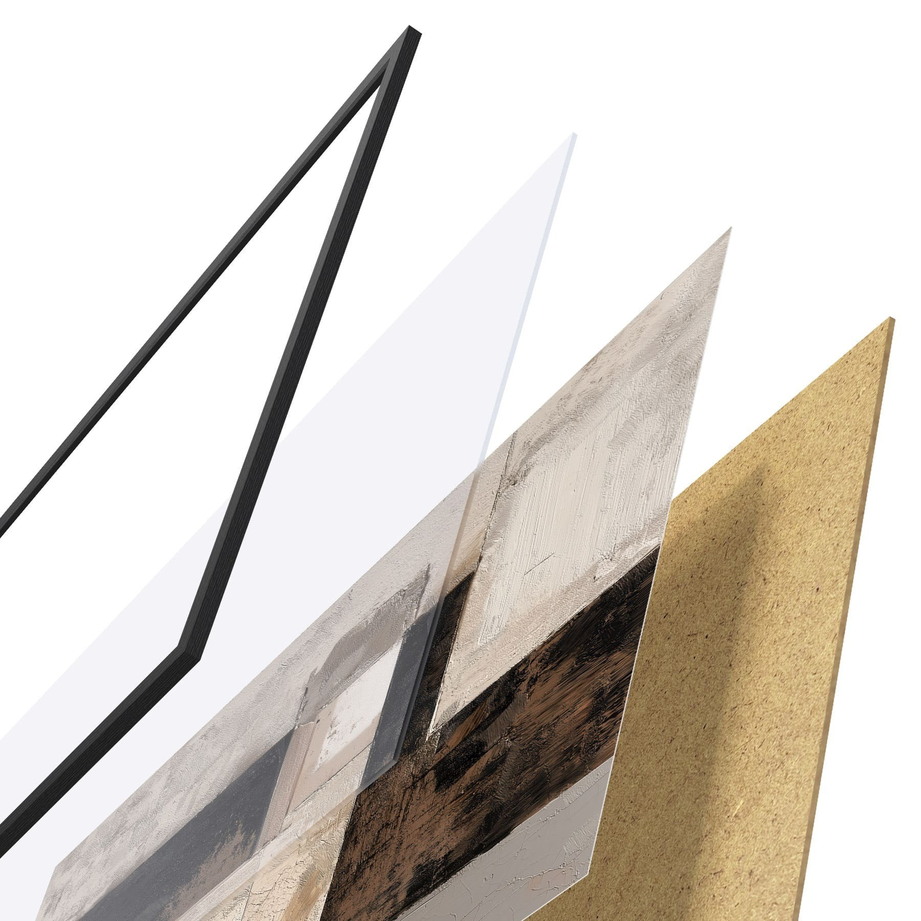 Plakatą sudaro rėmas, pleksiklas, atspausdintas vaizdas ir medžio drožlių plokštės pagrindas. Plakatą galima iš karto pakabinti ant sienos dėl kitoje pusėje esančių laikiklių.
