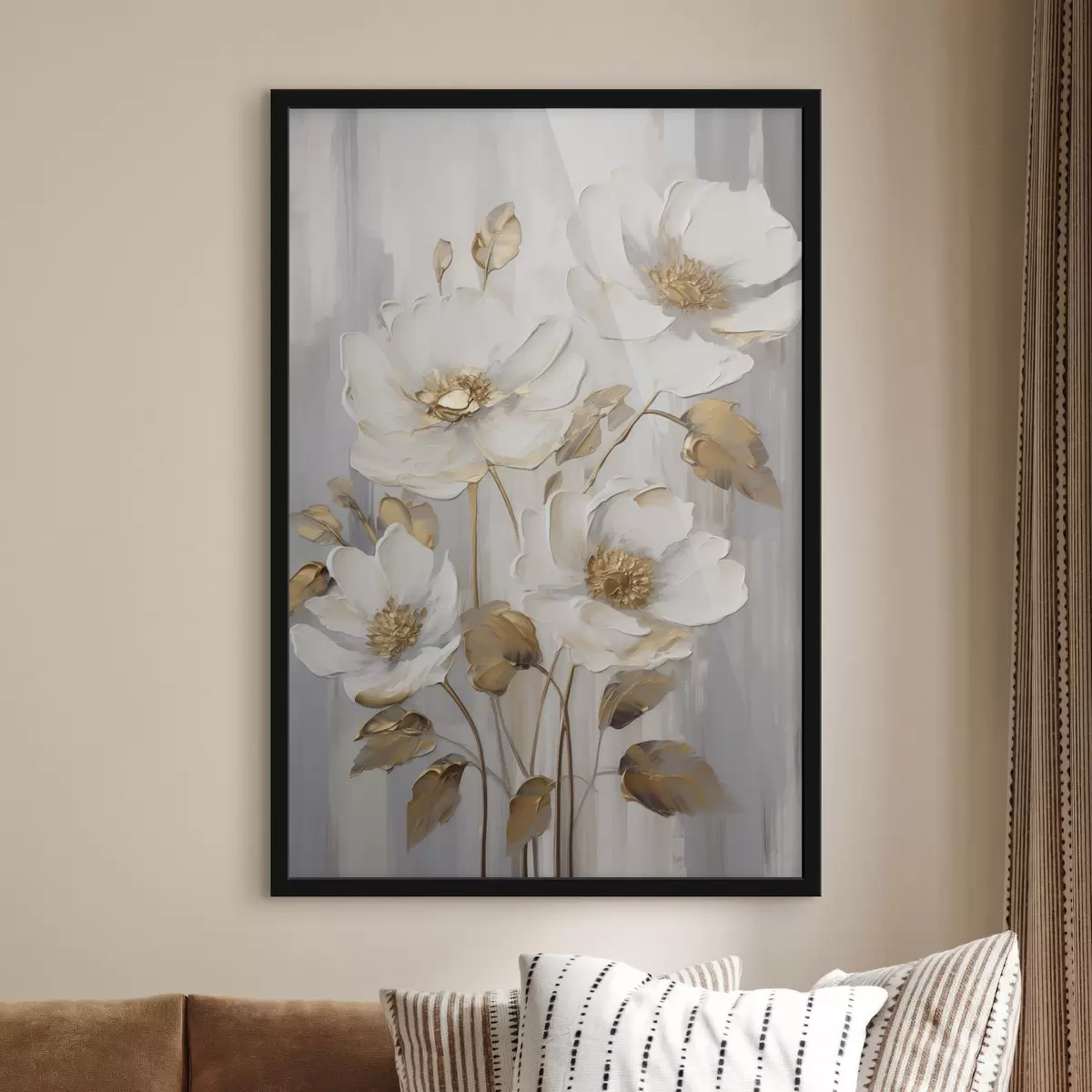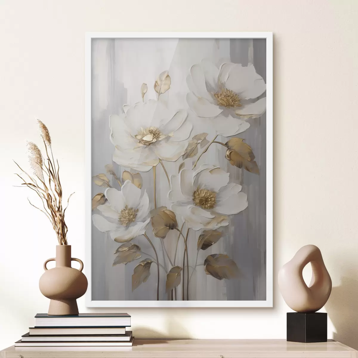 Plakatas Baltai žiedai su geltonais akcentais ant tekstūruoto fono Ne f48722
