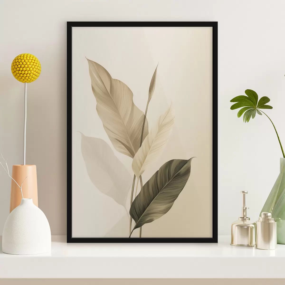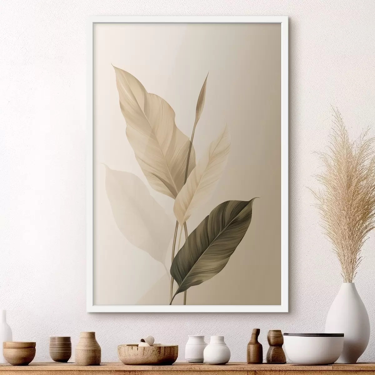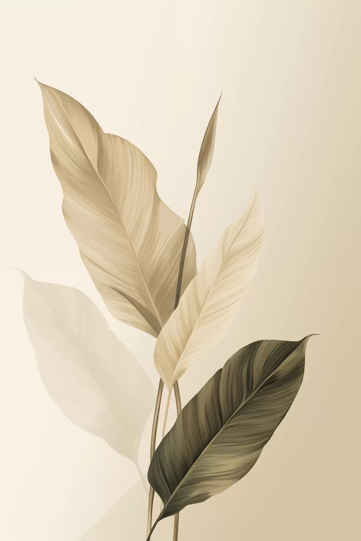 Plakatas Dideliai tropiniai lapai smėlio ir rudos spalvų atspalviais, šviesus fonas f48725