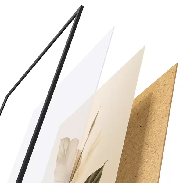 Plakatą sudaro rėmas, pleksiklas, atspausdintas vaizdas ir medžio drožlių plokštės pagrindas. Plakatą galima iš karto pakabinti ant sienos dėl kitoje pusėje esančių laikiklių.