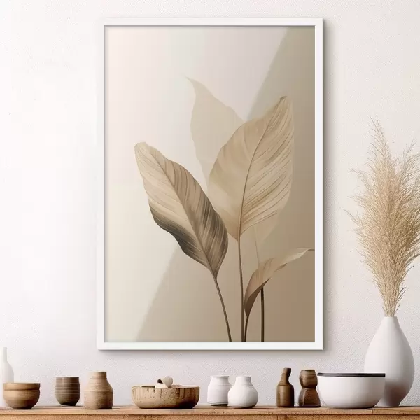 Plakatas Dideliai tropiniai lapai smėlio ir rudos spalvų atspalviais, šviesus fonas f48726