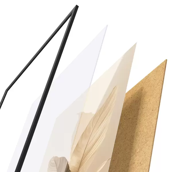 Plakatą sudaro rėmas, pleksiklas, atspausdintas vaizdas ir medžio drožlių plokštės pagrindas. Plakatą galima iš karto pakabinti ant sienos dėl kitoje pusėje esančių laikiklių.