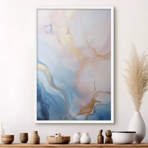 Plakatas Abstraktaus stiliaus tekstūrinis tapybos kūrinys su sūkuriais rožinės ir mėlynos spalvų raštais f48730