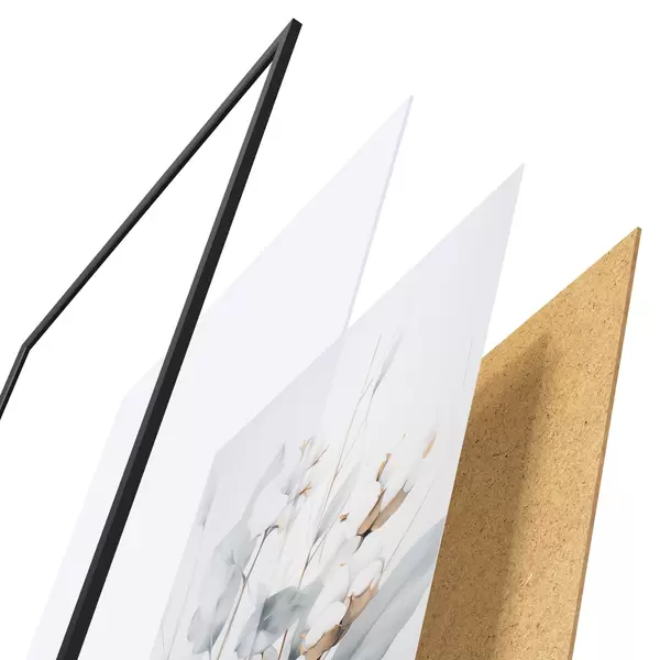 Plakatą sudaro rėmas, pleksiklas, atspausdintas vaizdas ir medžio drožlių plokštės pagrindas. Plakatą galima iš karto pakabinti ant sienos dėl kitoje pusėje esančių laikiklių.