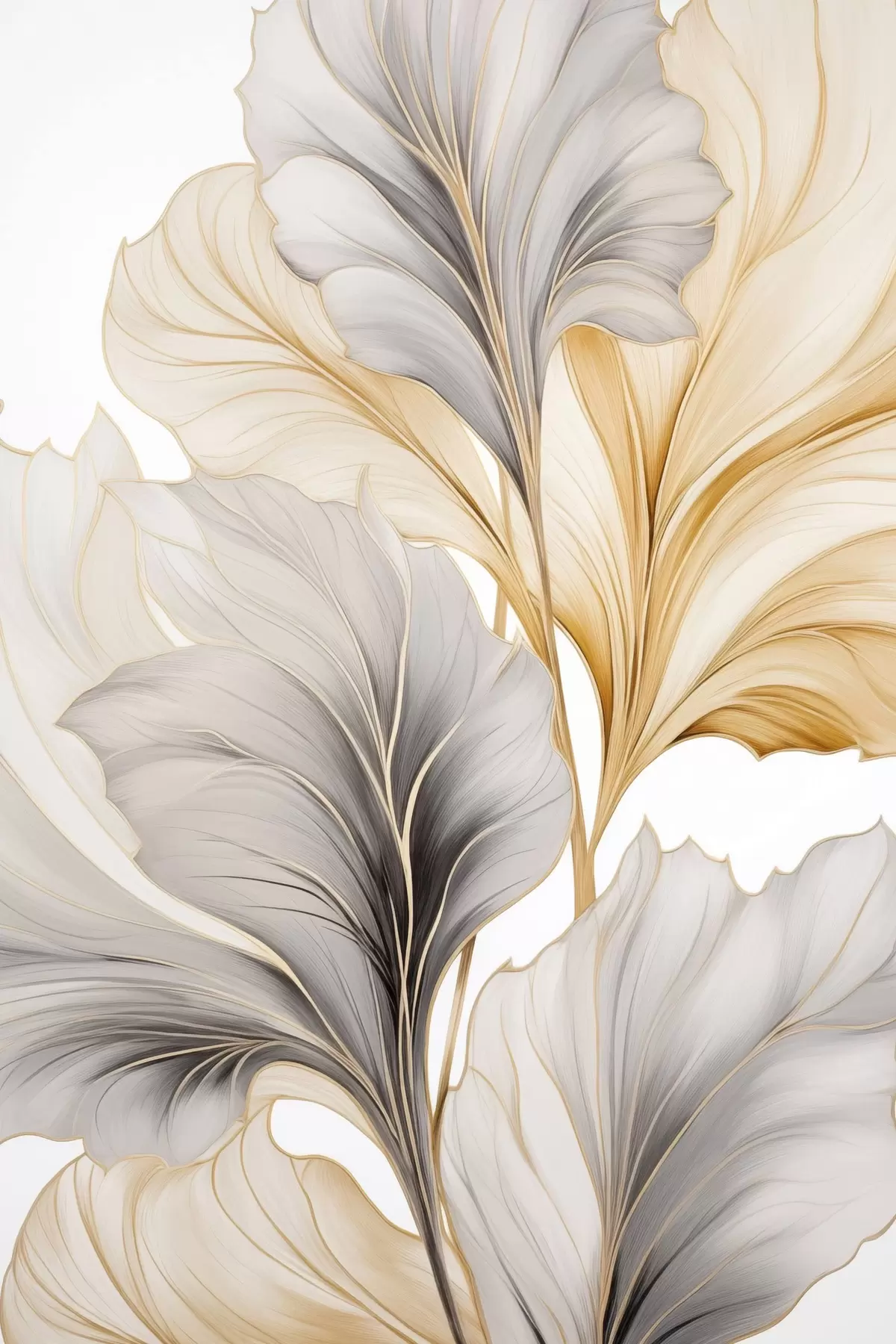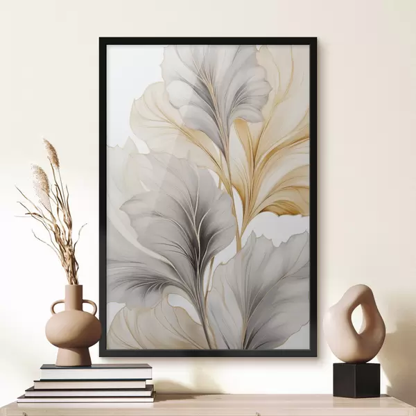 Plakatas Dideliai, permatomi lapai, kurių spalvos svyruoja nuo pilkos iki geltonos f48745