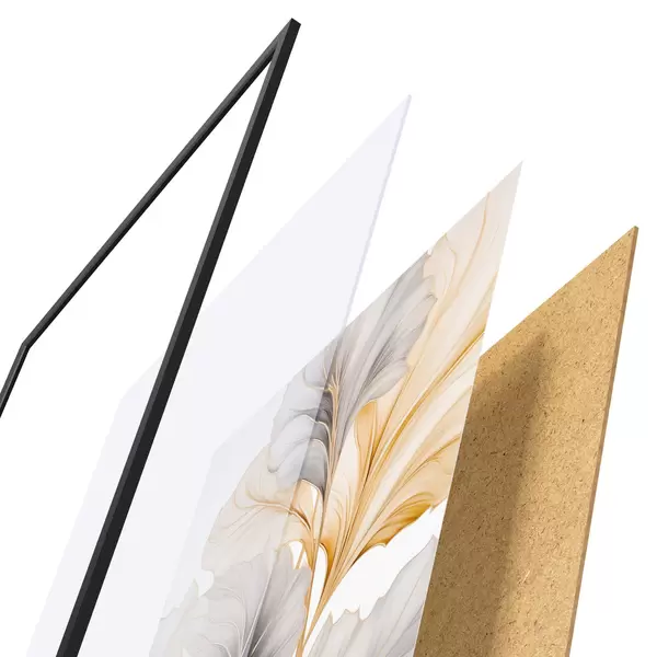Plakatą sudaro rėmas, pleksiklas, atspausdintas vaizdas ir medžio drožlių plokštės pagrindas. Plakatą galima iš karto pakabinti ant sienos dėl kitoje pusėje esančių laikiklių.