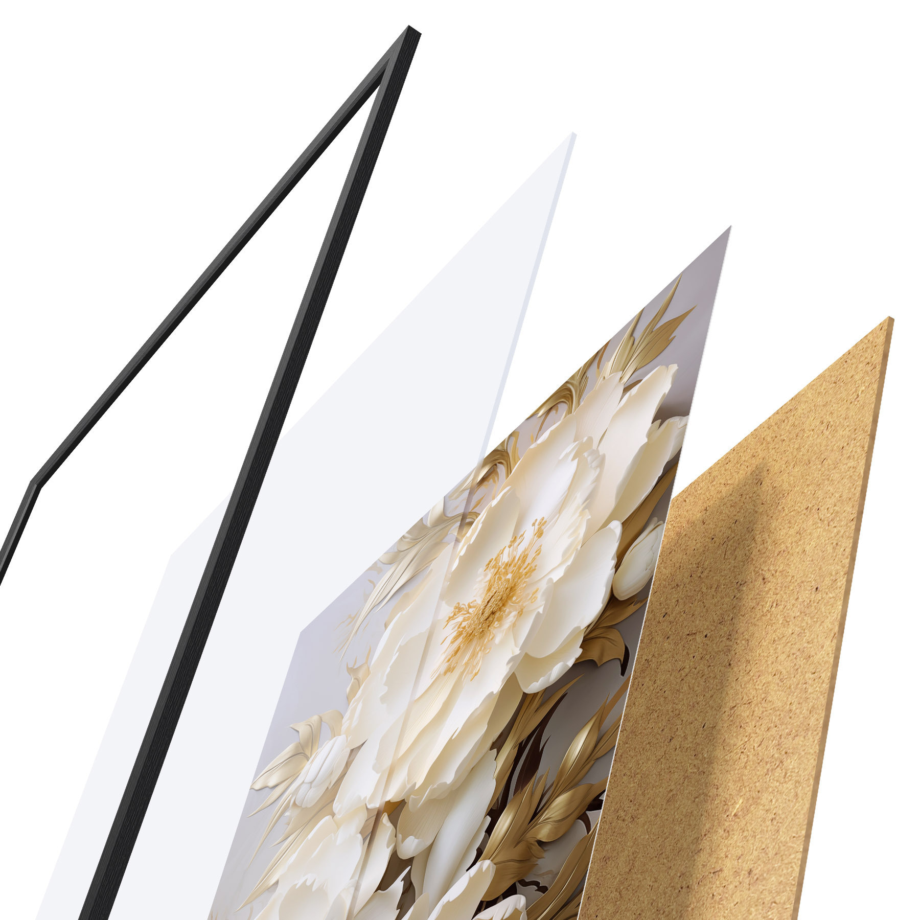 Plakatą sudaro rėmas, pleksiklas, atspausdintas vaizdas ir medžio drožlių plokštės pagrindas. Plakatą galima iš karto pakabinti ant sienos dėl kitoje pusėje esančių laikiklių.