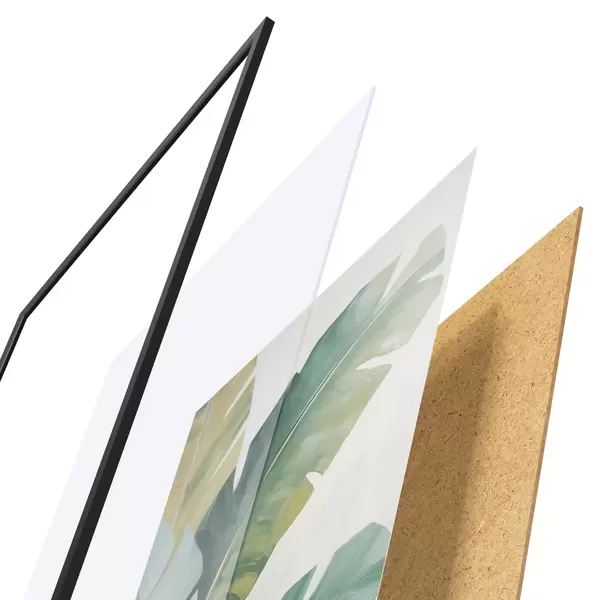 Plakatą sudaro rėmas, pleksiklas, atspausdintas vaizdas ir medžio drožlių plokštės pagrindas. Plakatą galima iš karto pakabinti ant sienos dėl kitoje pusėje esančių laikiklių.