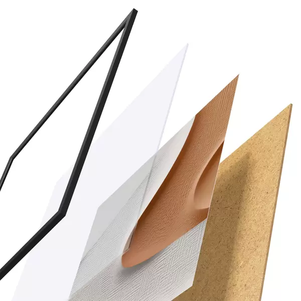 Plakatą sudaro rėmas, pleksiklas, atspausdintas vaizdas ir medžio drožlių plokštės pagrindas. Plakatą galima iš karto pakabinti ant sienos dėl kitoje pusėje esančių laikiklių.
