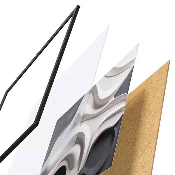 Plakatą sudaro rėmas, pleksiklas, atspausdintas vaizdas ir medžio drožlių plokštės pagrindas. Plakatą galima iš karto pakabinti ant sienos dėl kitoje pusėje esančių laikiklių.