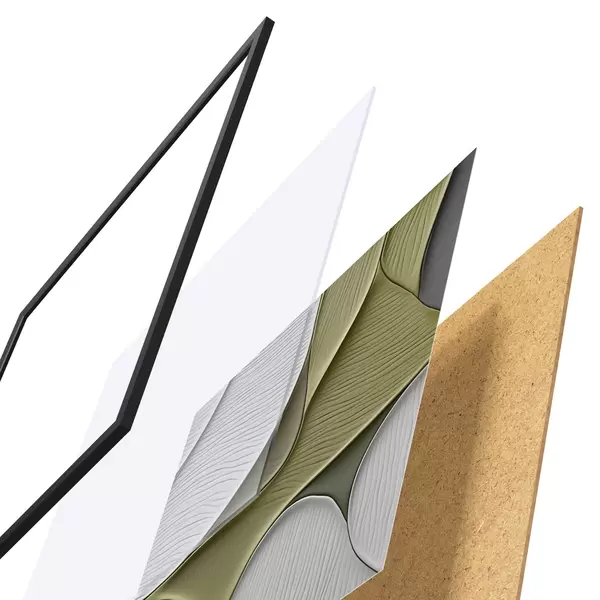 Plakatą sudaro rėmas, pleksiklas, atspausdintas vaizdas ir medžio drožlių plokštės pagrindas. Plakatą galima iš karto pakabinti ant sienos dėl kitoje pusėje esančių laikiklių.