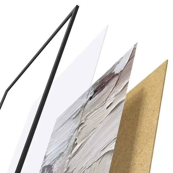 Plakatą sudaro rėmas, pleksiklas, atspausdintas vaizdas ir medžio drožlių plokštės pagrindas. Plakatą galima iš karto pakabinti ant sienos dėl kitoje pusėje esančių laikiklių.
