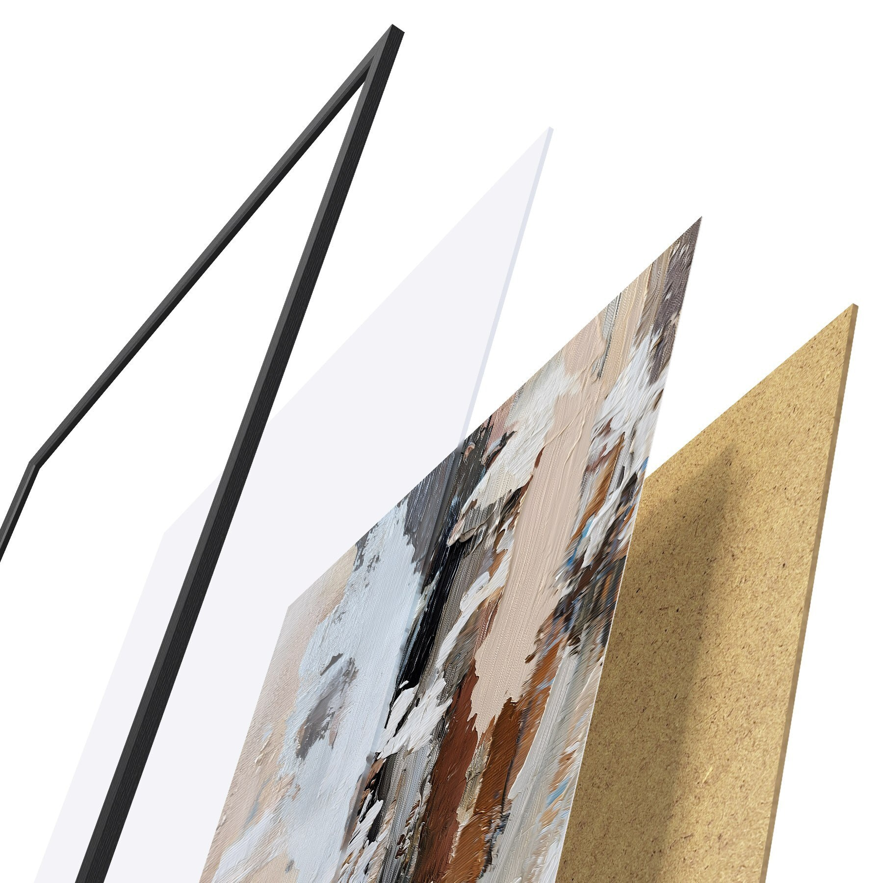 Plakatą sudaro rėmas, pleksiklas, atspausdintas vaizdas ir medžio drožlių plokštės pagrindas. Plakatą galima iš karto pakabinti ant sienos dėl kitoje pusėje esančių laikiklių.