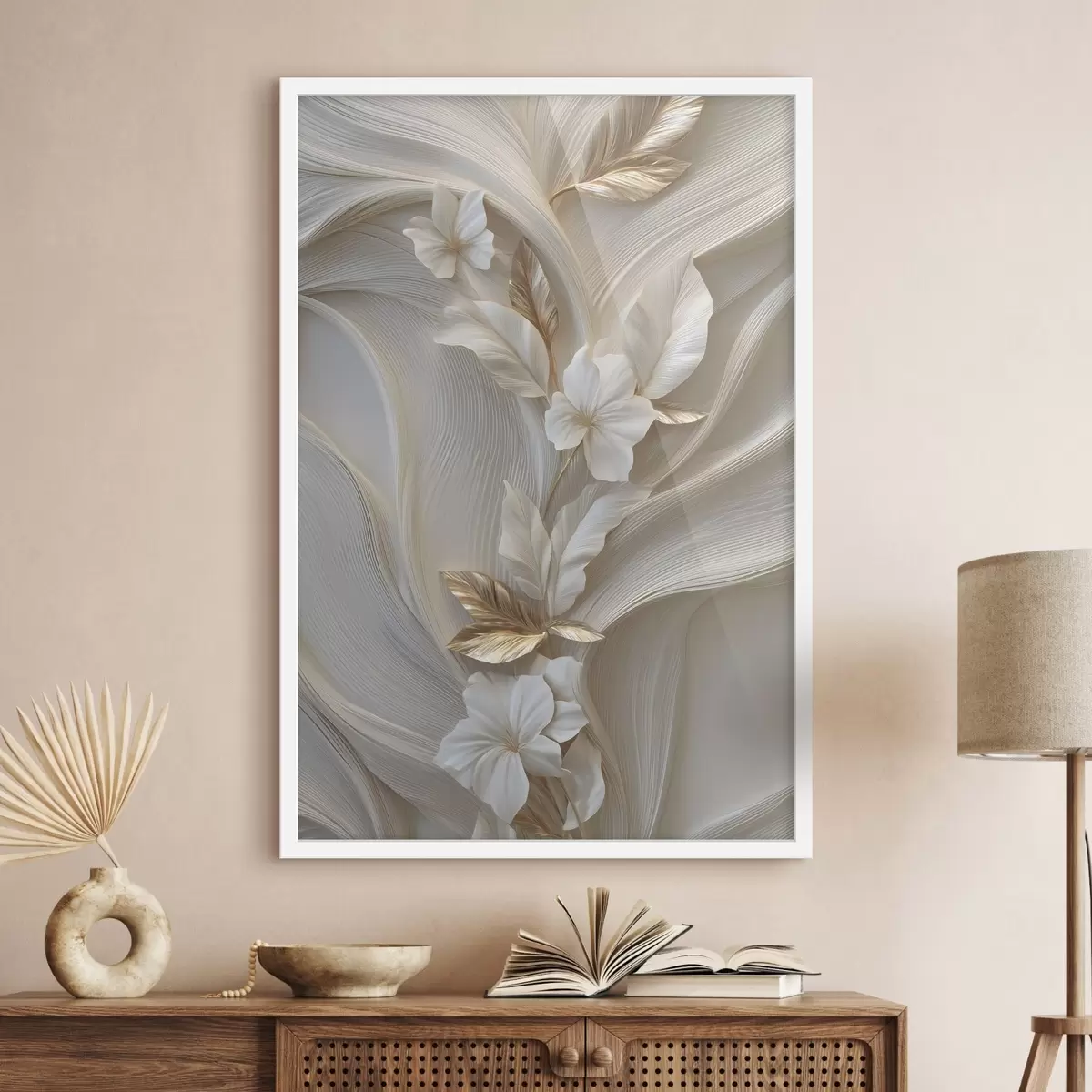 Plakatas puikus trimatės lapo, tekstūrų ir gėlių atvaizdas f48787