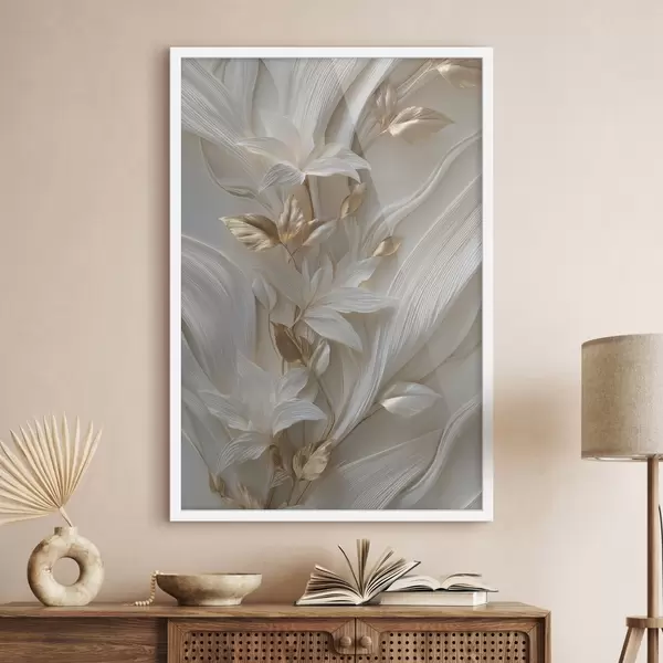 Plakatas puikus trimatės lapo, tekstūrų ir gėlių atvaizdas f48788