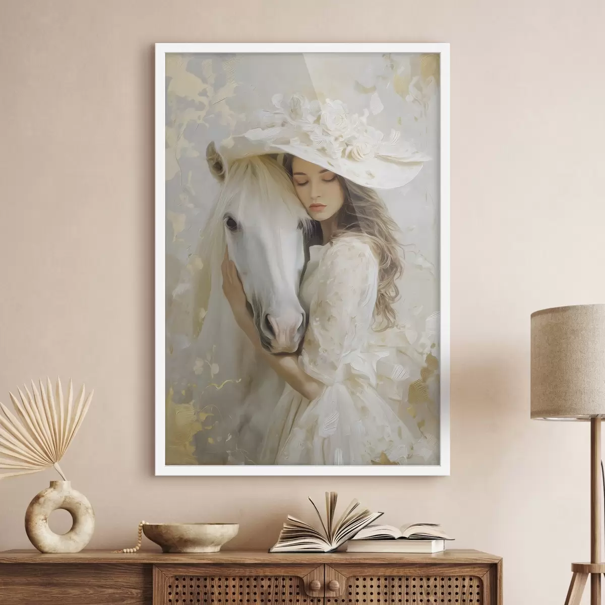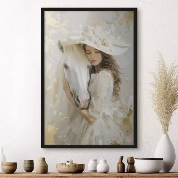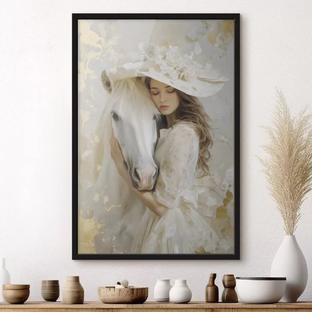 Plakatas mergina su baltu žirgu, nutapyta aliejaus technika Ne f48790