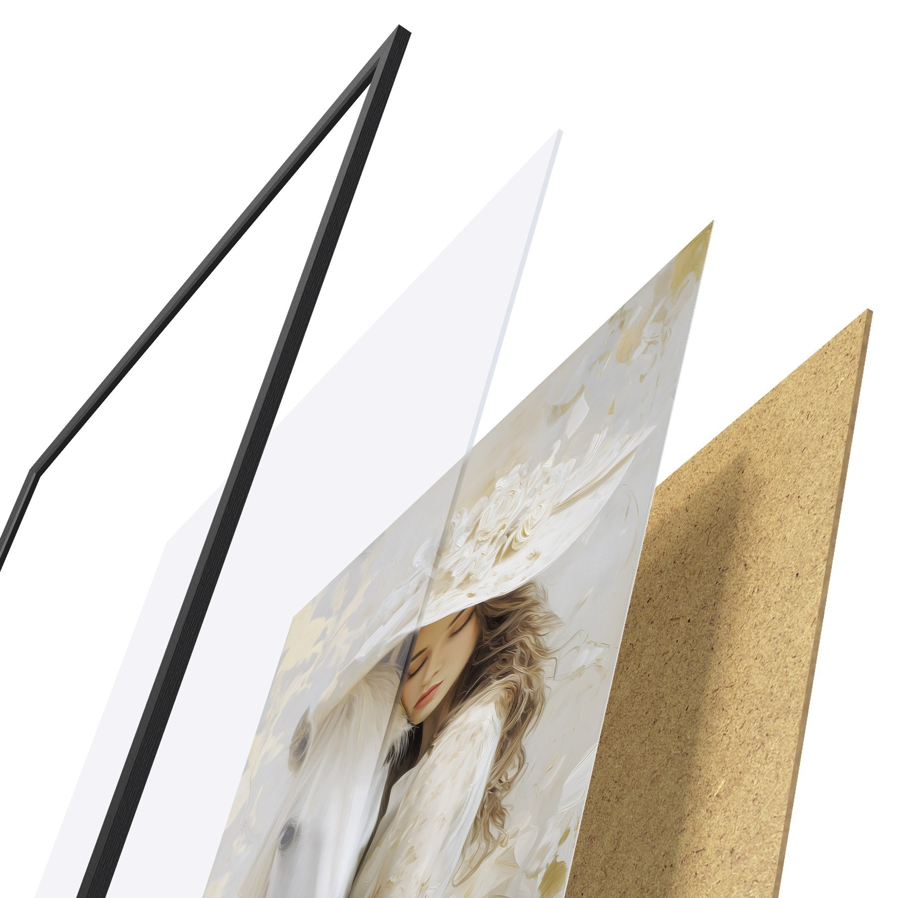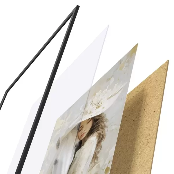 Plakatą sudaro rėmas, pleksiklas, atspausdintas vaizdas ir medžio drožlių plokštės pagrindas. Plakatą galima iš karto pakabinti ant sienos dėl kitoje pusėje esančių laikiklių.