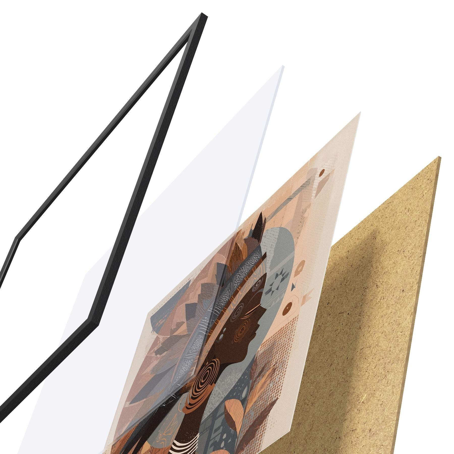 Plakatą sudaro rėmas, pleksiklas, atspausdintas vaizdas ir medžio drožlių plokštės pagrindas. Plakatą galima iš karto pakabinti ant sienos dėl kitoje pusėje esančių laikiklių.