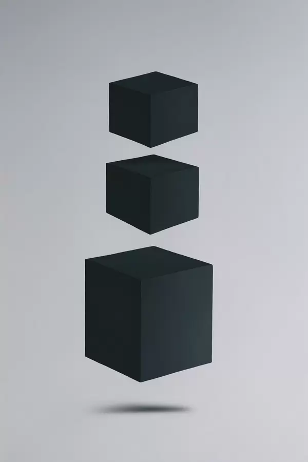 Plakatas Minimalizmas: trys tamsūs kubai, plūduriuojantys erdvėje Ne f48830